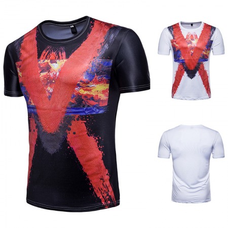 Men's 3D Short-Sleeved T-Shirt Splash Ink Printing T-Shirt Graffiti Printing T-Shirt