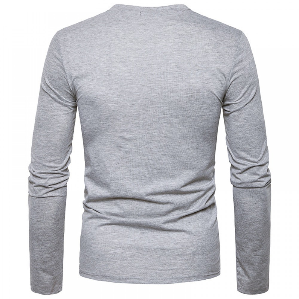 Men's Autumn and Winter Long-Sleeved Bottoming Waffle Henry Collar T-Shirt