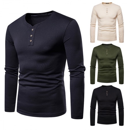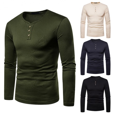 Round Neck Long T-Shirt Men's Loose Dark Trendy Men's Long-Sleeved T-Shirt