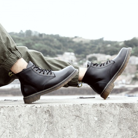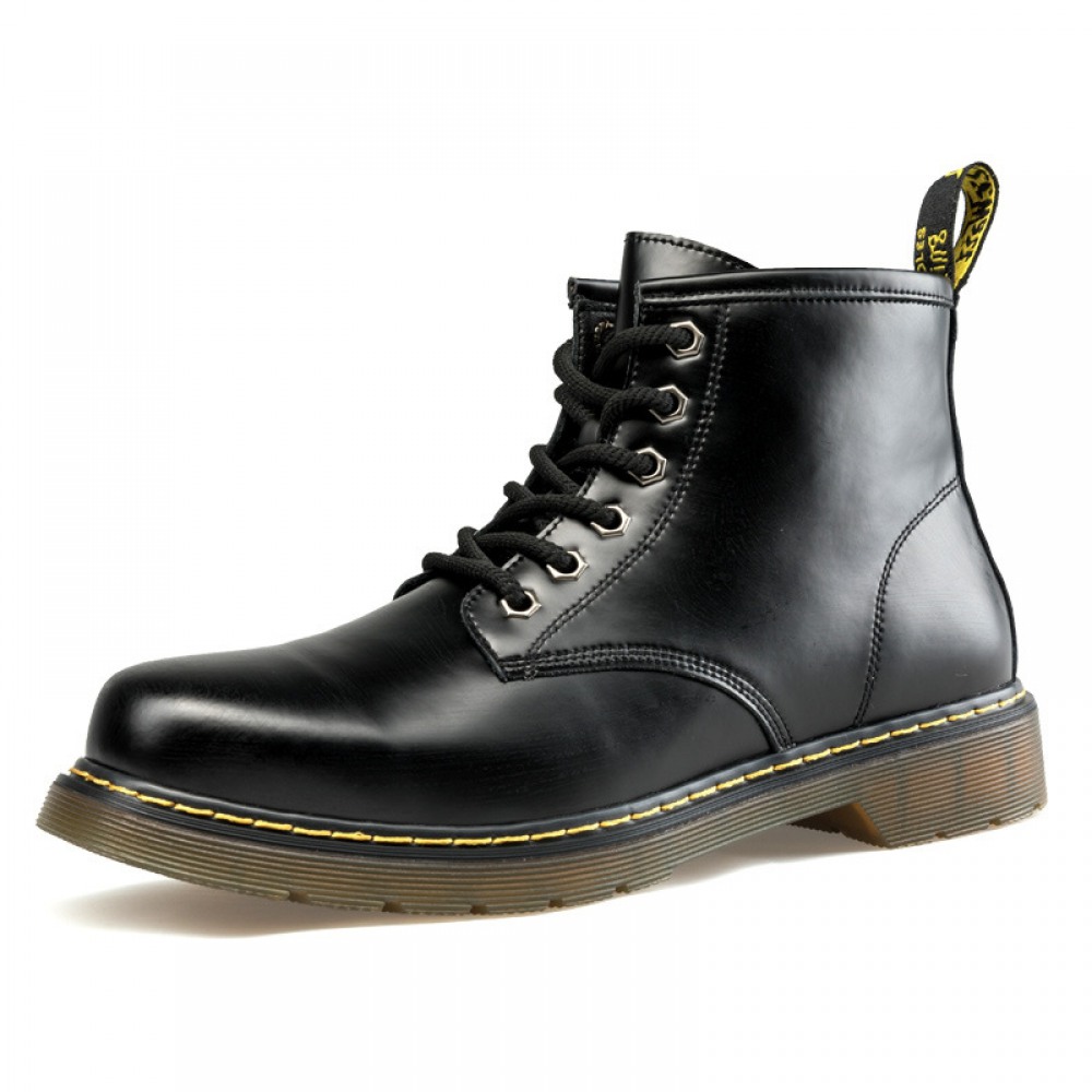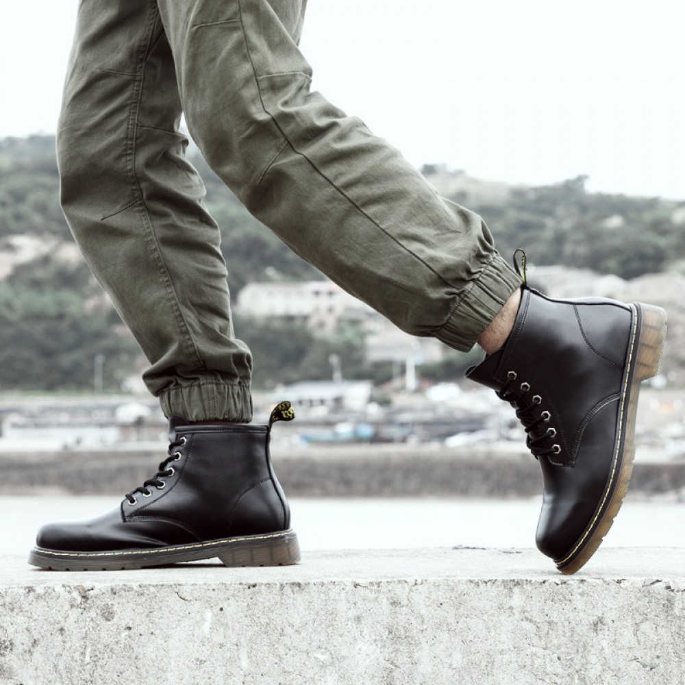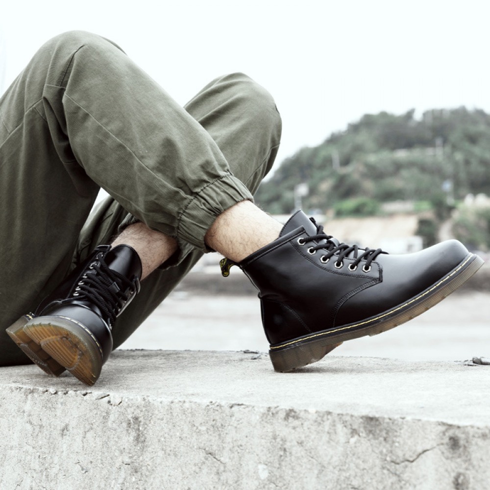 Men's Round Toe Casual Men's Leather Boots Front Lace-Up Martin Boots Flat Heel Men Shoes