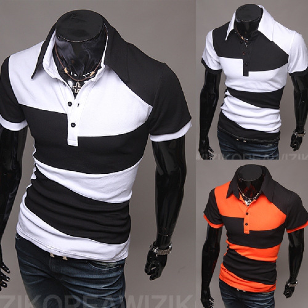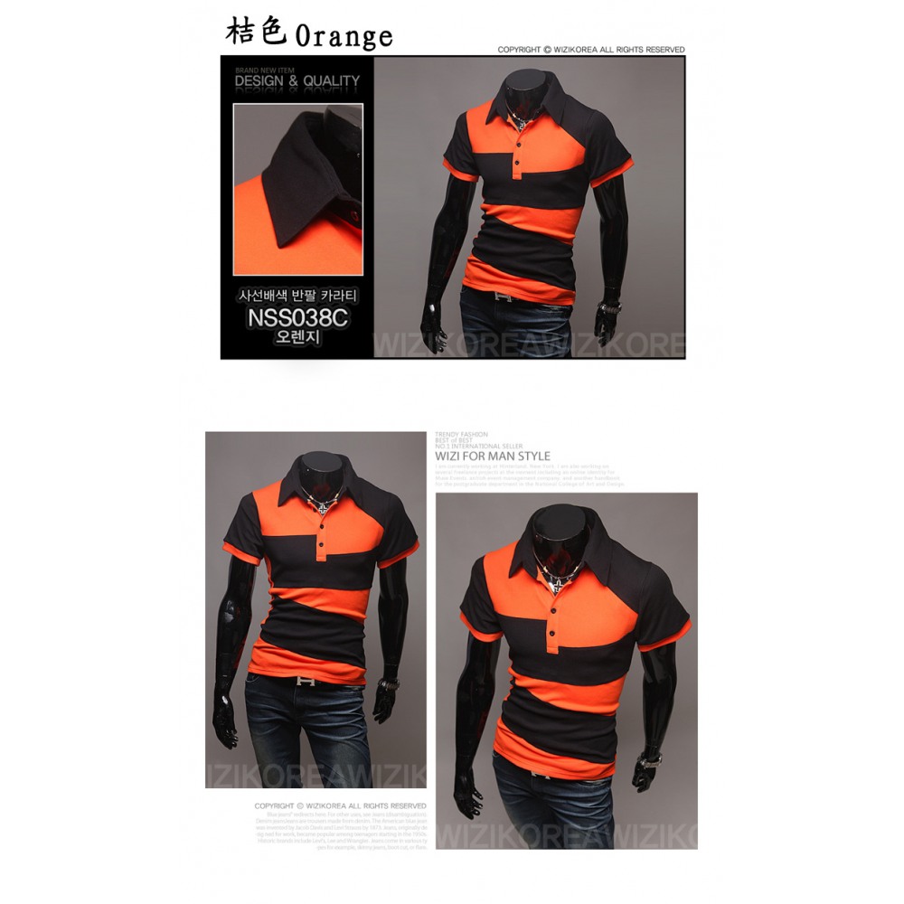 New Trend Men's Color Matching Short-Sleeved T-Shirt Mens All-Match Polo Shirt