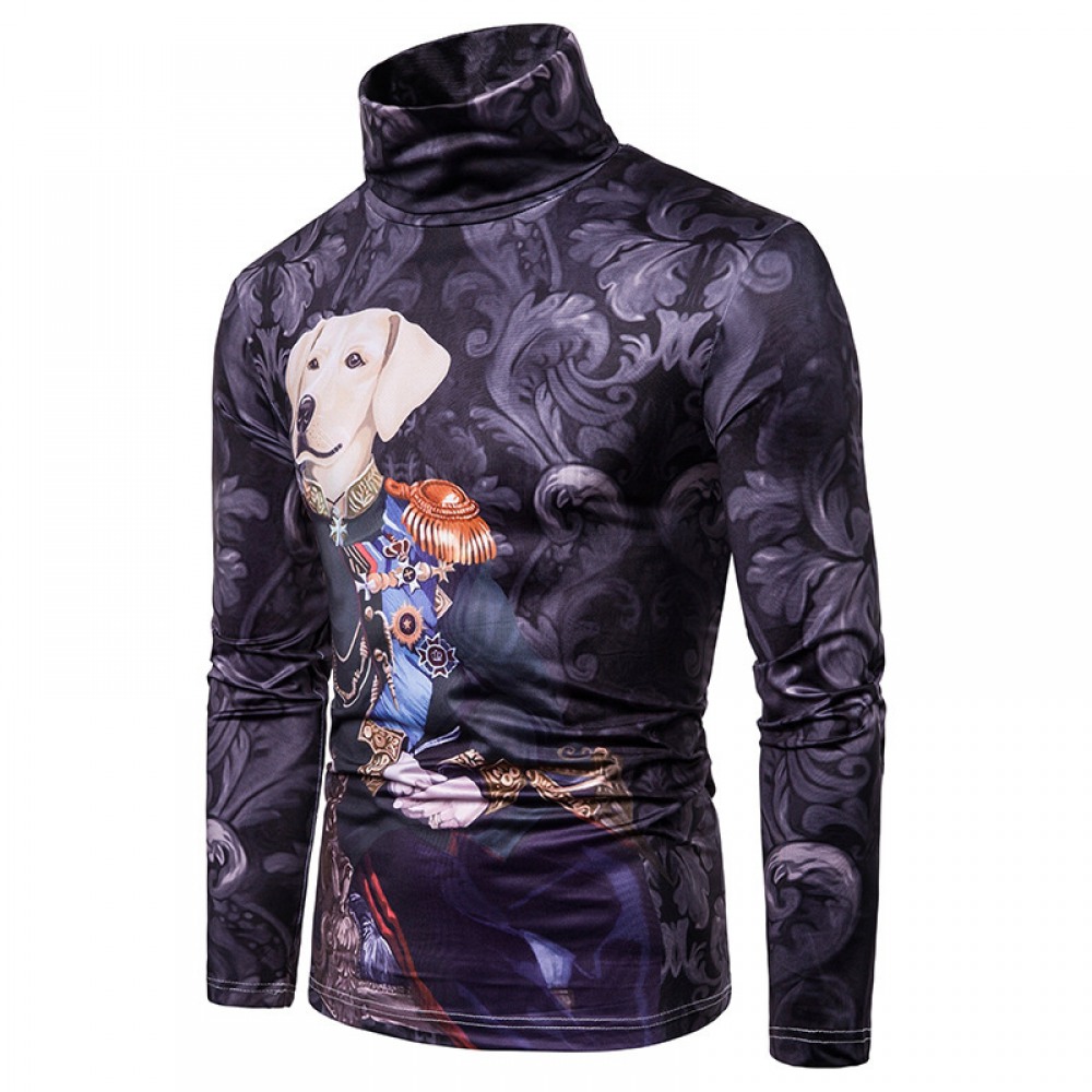 New Men's Plus Size 3D Duke Dog Pattern Printing High Neck Long Sleeve T-Shirt Bottoming Shirt