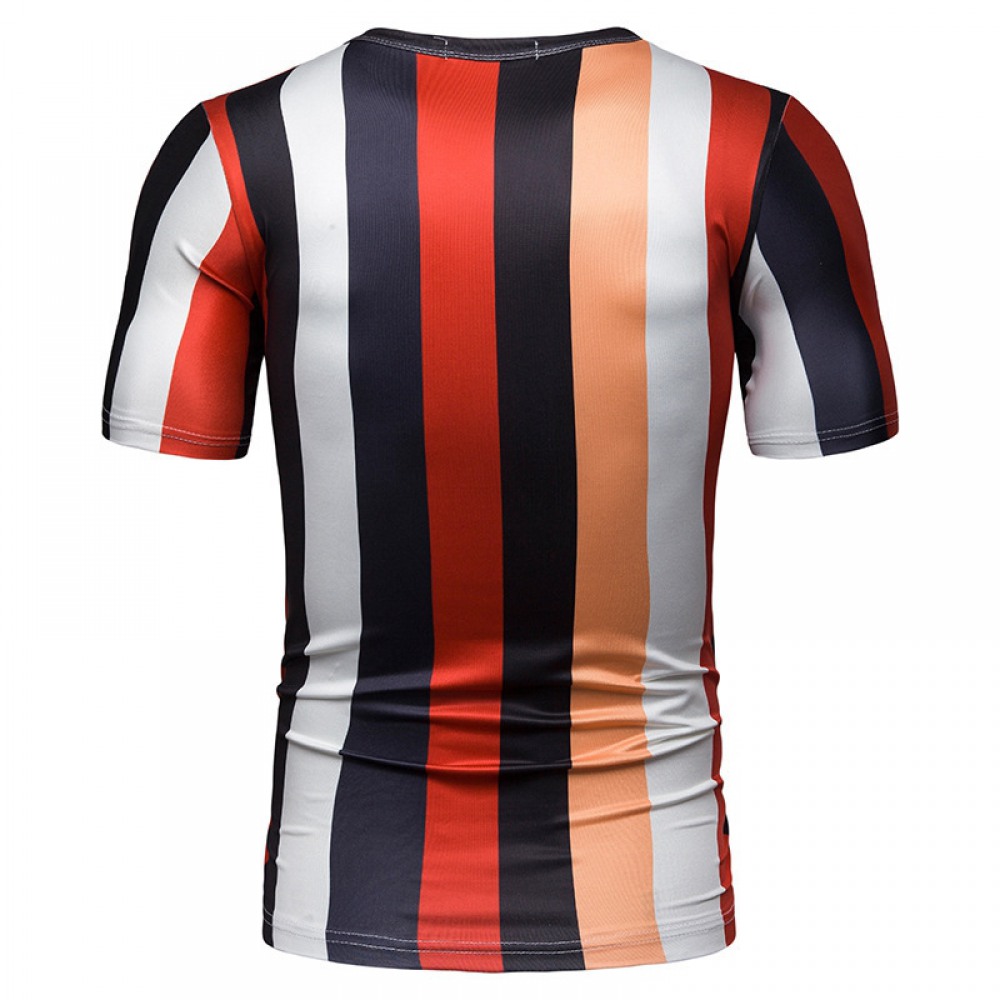 New Summer Men's Short-Sleeved T-Shirt Mens Contrast Striped Slim Casual T-Shirt