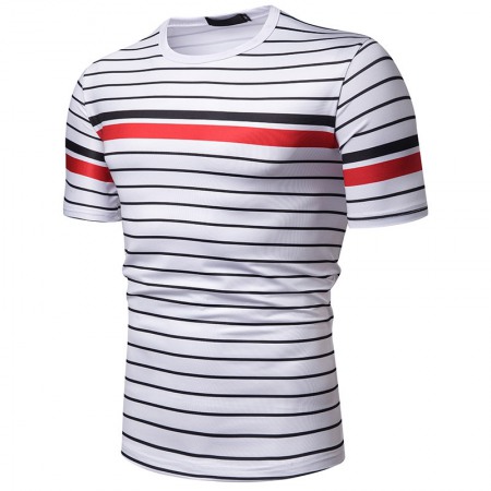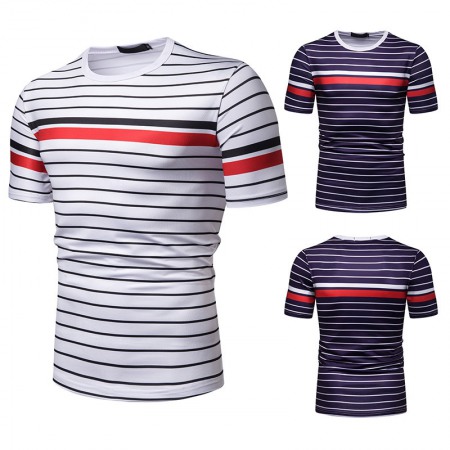 New Summer Men's Short-Sleeved T-Shirt Men's Contrast Striped Slim Casual T-Shirt