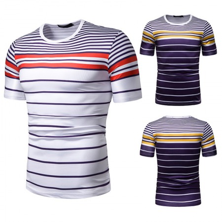 New Summer Men's Short-Sleeved T-Shirt Men's Contrast Striped Slim Casual T-Shirt