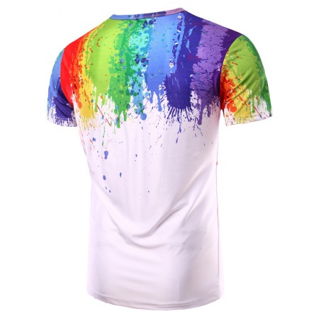 Summer New Style Splash Paint Ink 3D Printing Men's Rainbow Round Neck Short Sleeve T-Shirt