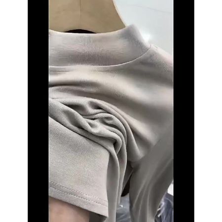 Double-Sided Velvet Half Turtleneck Long-Sleeved T-Shirt Heavy Solid Color Round Neck Casual Bottoming Shirt